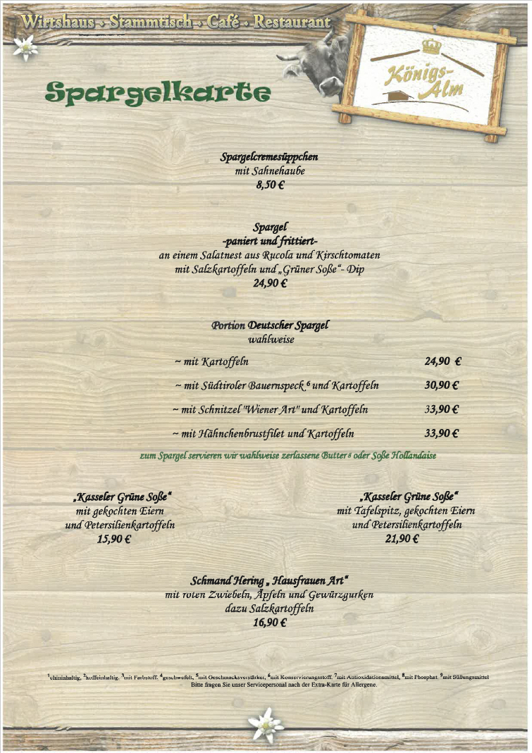 ► Spargelkarte (jeweils Montag - Freitag) ► Speisen und Getränke